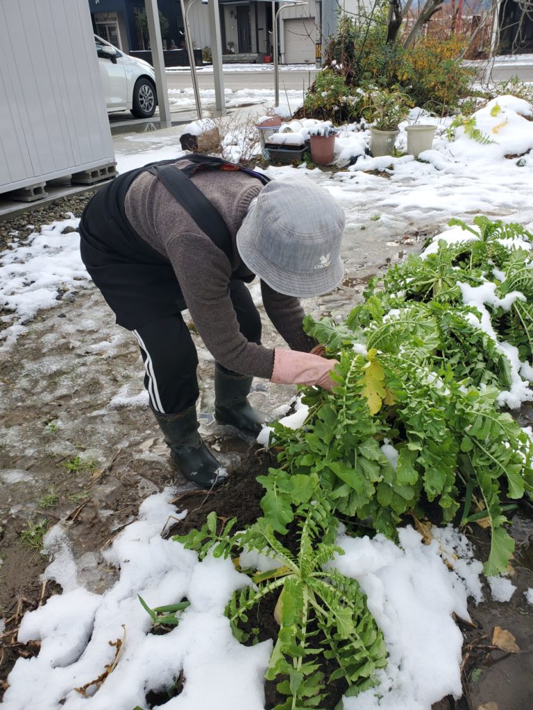 一番は秋に植え雪の降る前に収穫が出来ることである。